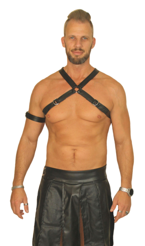 OverzichtPu leren biceps band met metalen gesp strakker en losser te zetten. Deze is passend voor maat M, gemiddelde biceps.