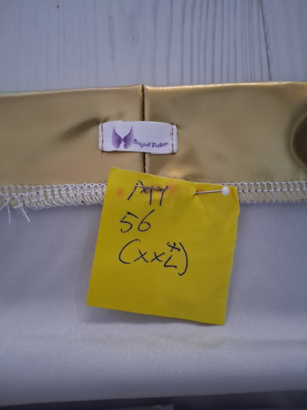 OverzichtHeren lak slip. Een sexy lak slip voor heren, gemaakt van gouden stretch lak. De slip is afgewerkt met lngerie-elastiek en een boordje van stretch lak. Maat 56